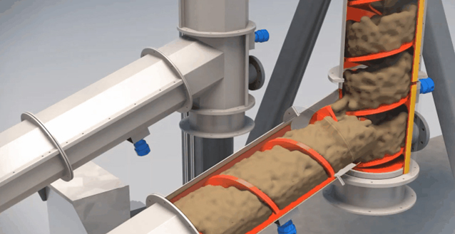 The spiral feeding system is mainly composed of material trough, spiral blade, rotating shaft and driving device.